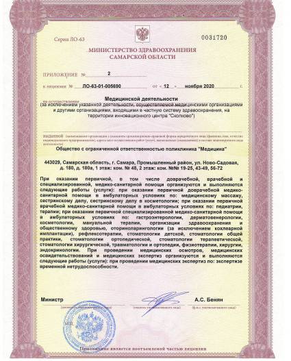Многопрофильная клиника «Медицина» на ул.Ново-Садовая, д. 180, г. Самары (м. Спортивная) оказывает медицинские услуги населению и организациям с 1999 года. Деятельность клиники включает услуги поликлиники и дневного стационара, хирургическое лечение и реабилитационные мероприятия. Специалисты многопрофильной клиники «Медицина» - это доктора и кандидаты медицинских наук, врачи высшей и первой квалификационной категории. Специалисты клиники регулярно повышают уровень своей квалификации, как в России так и за рубежом, поэтому мы всегда используем передовые технологии в своей работе. Наши врачи работают на современном оборудовании. К каждому пациенту у нас индивидуальный подход. Врач уделяет вам достаточно времени и внимания. Вы получаете хорошую медицинскую помощь по доступным ценам, так как у нас существует система скидок. Вы можете у нас оформить больничный лист. Также вы можете обратиться за медицинскими справками для ГИБДД, посещения бассейна, поступления в учебные заведения, за санитарными книжками, медицинскими справками для мигрантов и др. Наша клиника называется многопрофильной, потому что в клинике ведут прием врачи почти всех направлений. Вы можете получить комплексное лечение. А также сдать анализы, сделать УЗИ. И всё это в одном месте. Вам не надо тратить время, нервы и лишние деньги.
